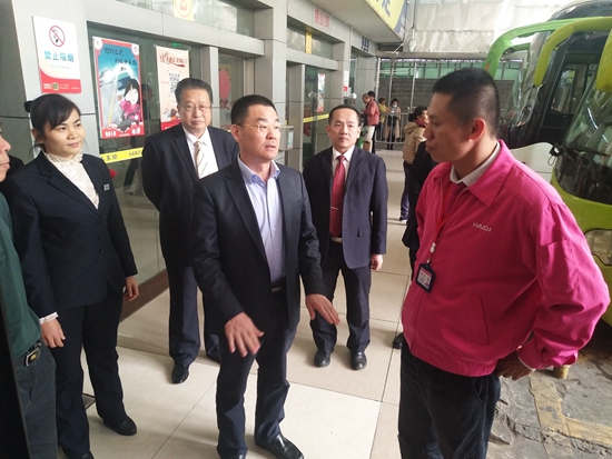本网讯2月12日下午,尊龙凯时集团公司董事长姜宏涛到海口汽车东站检查春运安全工作,慰问一线员工。副总裁牛干、安全总监陈崇明、海口公司、旅游客运分公司、高速公路旅游等单位领导陪同检查。