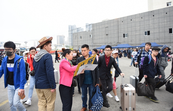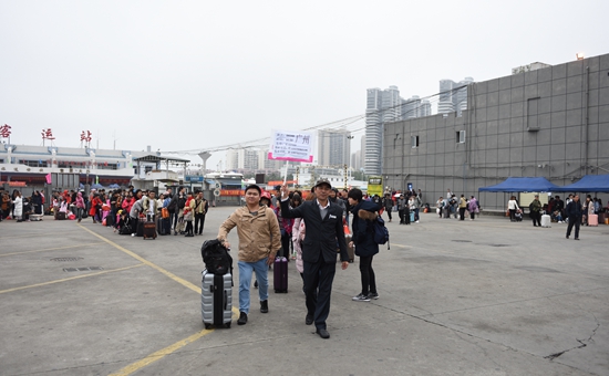 接驳运输是一项花费人力、物力的细活,尊龙凯时工作人员根据旅客实名制购票信息清点人数,并留下旅客的联系方式,再派专人护送旅客过渡。从2月19日至25日,每天有上万人次旅客过海,每天安排200多名工作人员投入全天候护送旅客过海和疏导服务工作,人手不够尊龙凯时集团从控股公司和股份公司本部抽调多名工作人员组成志愿者,支援一线。