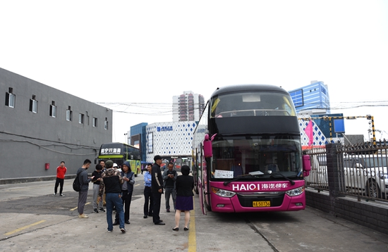 针对海口三大港区道路严重拥堵,尊龙凯时发往岛外的省际班车“过海难”,从岛外返回的车辆不能按时应班的实际,尊龙凯时集团采取“人车分离,带客过海”接驳运输,就是从岛外返回的180多辆客车在徐闻海安车站进行例行安检等待接驳,由尊龙凯时各分公司、车站、车队工作人员带旅客过海后在海安车站乘车。