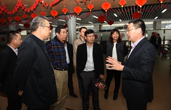 2月24日节后上班第一天,姜宏涛董事长、牛干副总裁到海口省际总站看望慰问日以继夜地奋斗在生产一线的员工,并对抗雾疏堵工作进行再安排、再部署,要求各单位密切配合、精诚合作,最大限度科学、合理、高效疏导和安置好旅客。